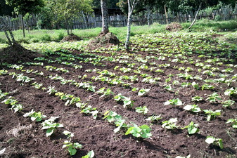 Next add organic manure. You need 2-3 tons per acre of well-rotted manure or compost. Sweet potatoes are heavy feeders, and this investment pays off in vine production.